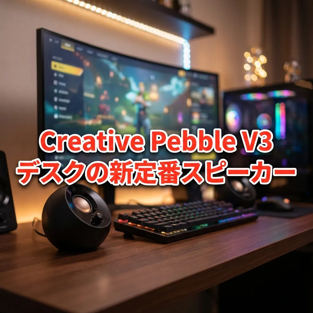PCスピーカーの定番として君臨するCreative Pebbleシリーズ。その中でも「V3」は、現代のデスク環境に最適化されたUSB-C接続とBluetooth 5.0を搭載した中心モデルです。